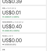 어제 저녁 승인이 나고 첫 수익 0.01달러, 너무 감격스러워 캡처하였습니다.